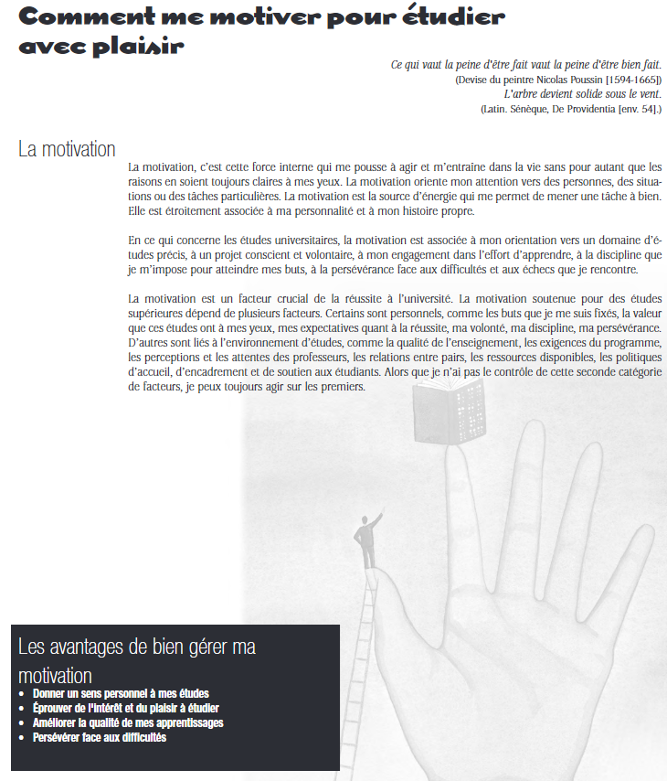 Faites un lien vers ce site Web depuis votre cours en ligne : https://www.aide.ulaval.ca/apprentissage-et-reussite/textes-et-outils/difficultes-frequentes-en-cours-d-apprentissage/la-baisse-de-motivation/