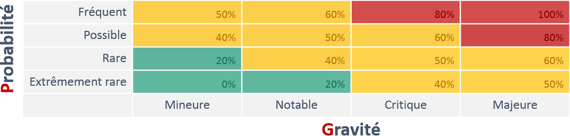 - Risque « acceptable » avec un taux de criticité normé dans la fourchette basse entre 0% et 40%