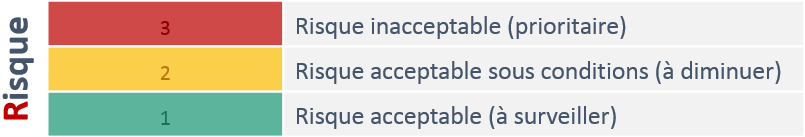 - Risque « inacceptable » avec un taux de criticité normé dans la fourchette haute entre 70% et 100%