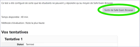 - Cliquez sur "Sortir de Safe Exam Browser".