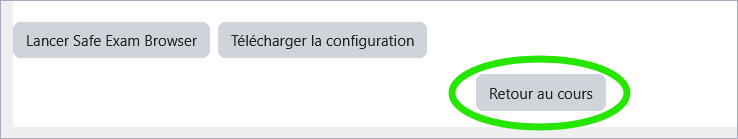 - Une fois que vous avez cliqué sur l'intitulé du questionnaire d'examen dans cet espace de cours en ligne, cliquez sur le bouton "Lancer Safe Exam Browser".