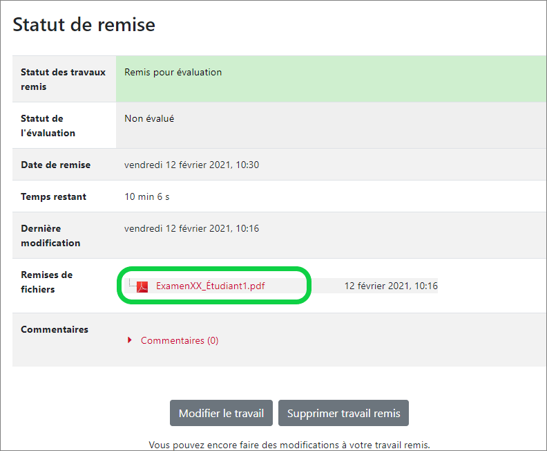 1. Le fichier doit être visible sur le formulaire de remise selon l'image ci-dessous :