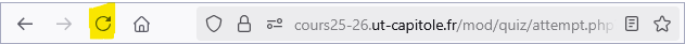 • EN CAS DE BLOCAGE OU DYSFONCTIONNEMENT dans une page lors d'un examen, commencez par la réactualiser. Pour cela vous pouvez cliquer sur la flèche tournante dans la barre d'en-tête de votre navigateur web :