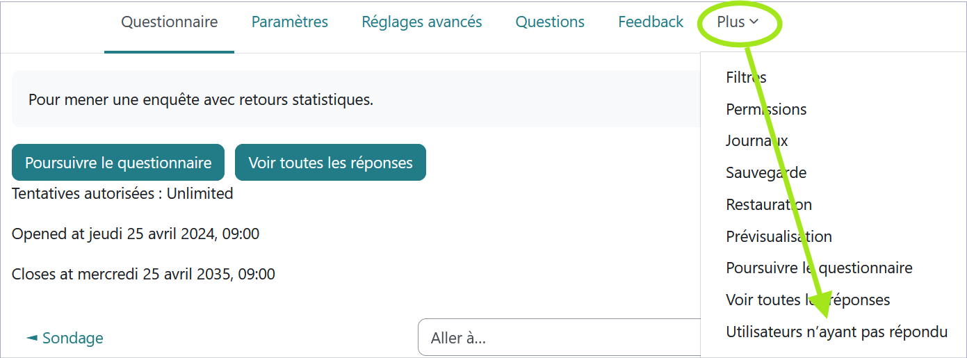 Dans "Administration du questionnaire", cliquez sur "Utilisateurs n'ayant pas répondu" :