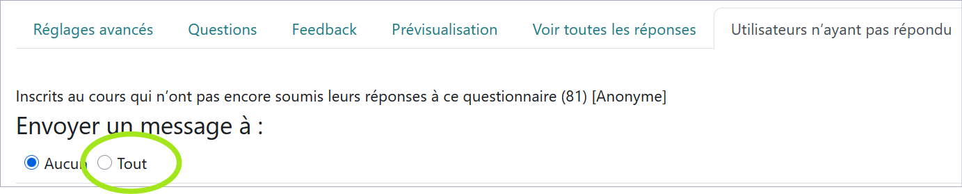 Si le questionnaire est anonyme, seul apparaît alors le nombre de personnes concernées. Cliquez sur "Tout" :