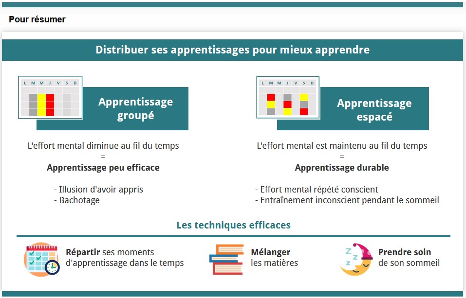 - Comprendre la différence entre apprentissage concentré et apprentissage espacé