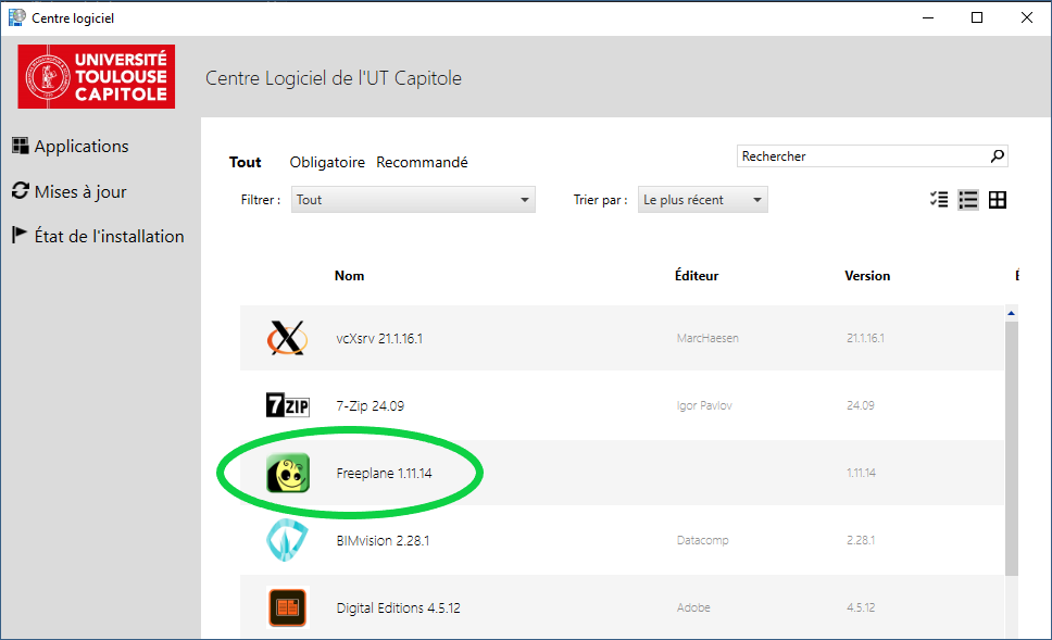 Si vous êtes enseignants et personnels BIATSS, cet outil est intégré dans catalogue de logiciels disponible dans le "Centre logiciel" de votre ordinateur :