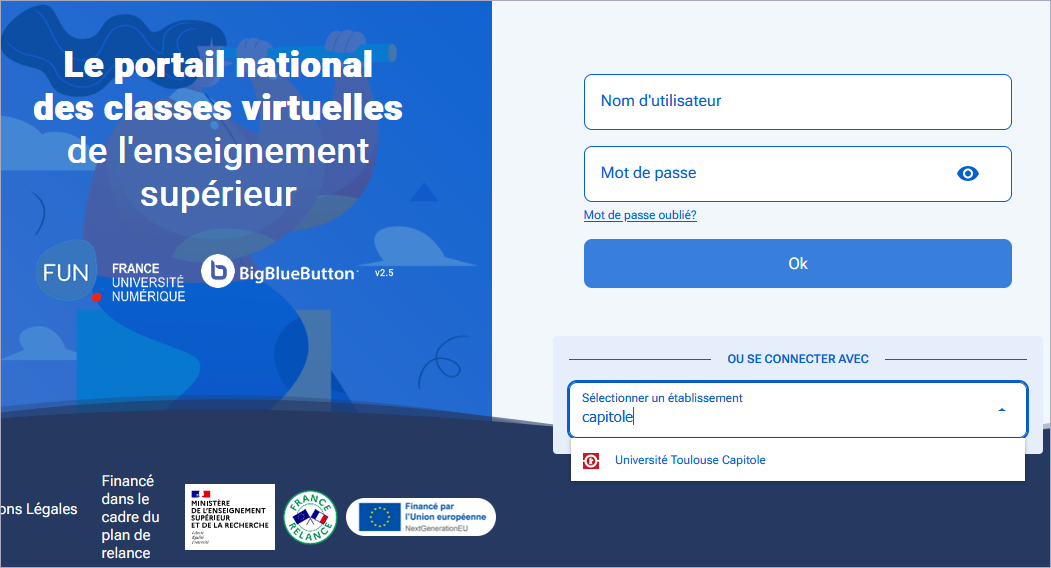 Vous pouvez créer une classe virtuelle en-dehors de Moodle sur la plateforme nationale https://classe-virtuelle.numerique-esr.fr/login avec vos identifiants UT Capitole en vous aidant de cette documentationhttps://doc.numerique-esr.fr/guide-dutilisation/creer-votre-classe-virtuelle/depuis-le-portail-national